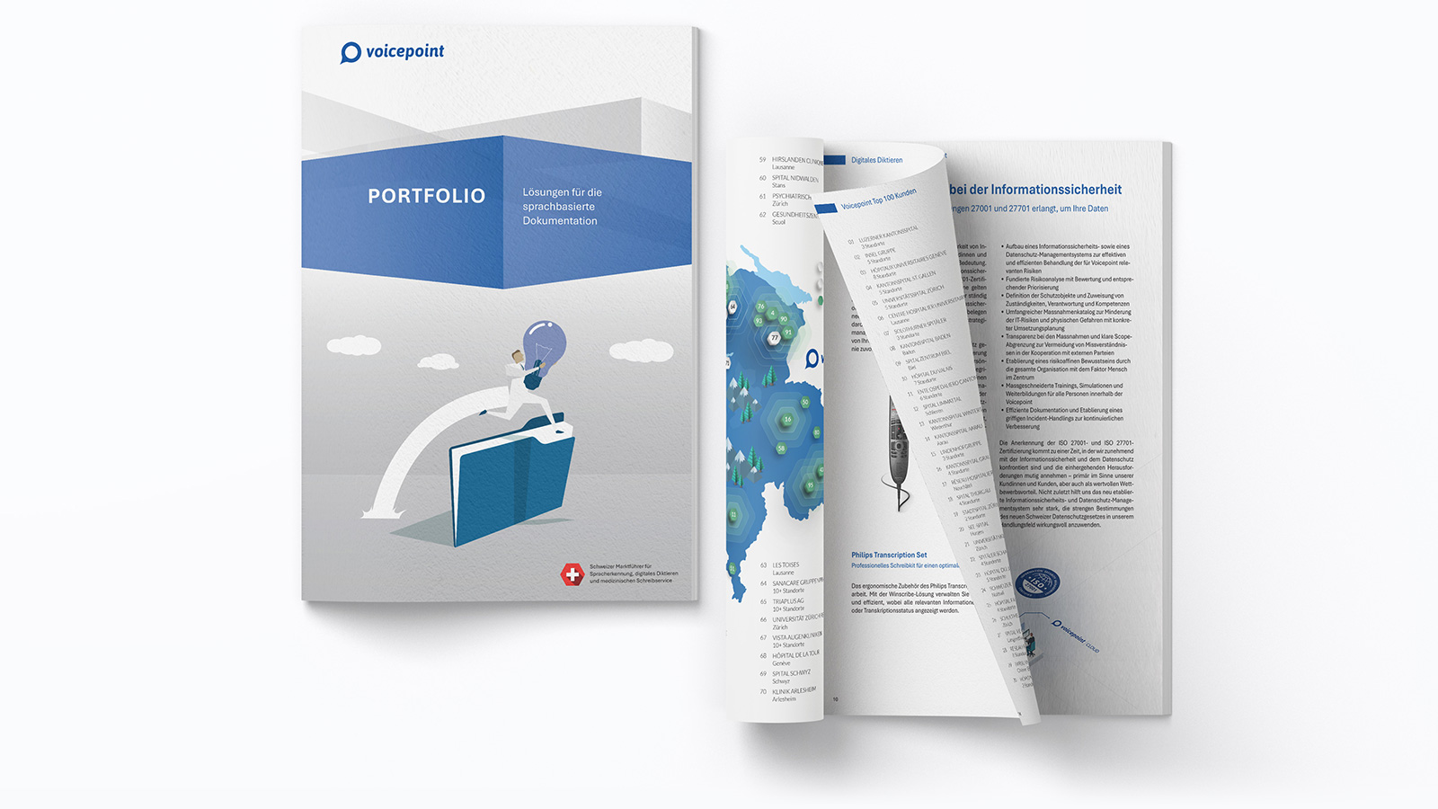 Lesen Sie in unserem Portfolio ausserdem über unsere sichere und kosteneffiziente Voicepoint Cloud, verschiedene Diktiersysteme und Referenzberichte sowie über unseren medizinischen Schreibservice. Dieser bietet Ihnen mit qualifiziertem und erfahrenem medizinischen Fachpersonal eine hochwertige Unterstützung in Ihrem Berichtswesen.