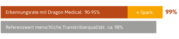 Dragon Medical Practice Edition und Dragon Medical Direct bieten out-of-the-box ein medizinisches Basisvokabular mit Ausdrücken für verschiedene medizinische Fachgebiete. Mit unseren Spark-Werkzeugen sorgen wir in Ergänzung zu Dragon Medical für ein individuell auf Sie abgestimmtes und erstelltes Vokabular für Ihren medizinischen Fachbereich. Somit erzielen wir mit Voicepoint Spark eine optimale Erkennungsgenauigkeit der Spracherkennungslösung, die nachhaltig ist. Mithilfe unseres professionellen medizinischen Fachpersonals werden die Spark-Vokabulare in maximaler Qualität erstellt, sodass Fachausdrücke auf Anhieb korrekt erkannt und geschrieben werden.